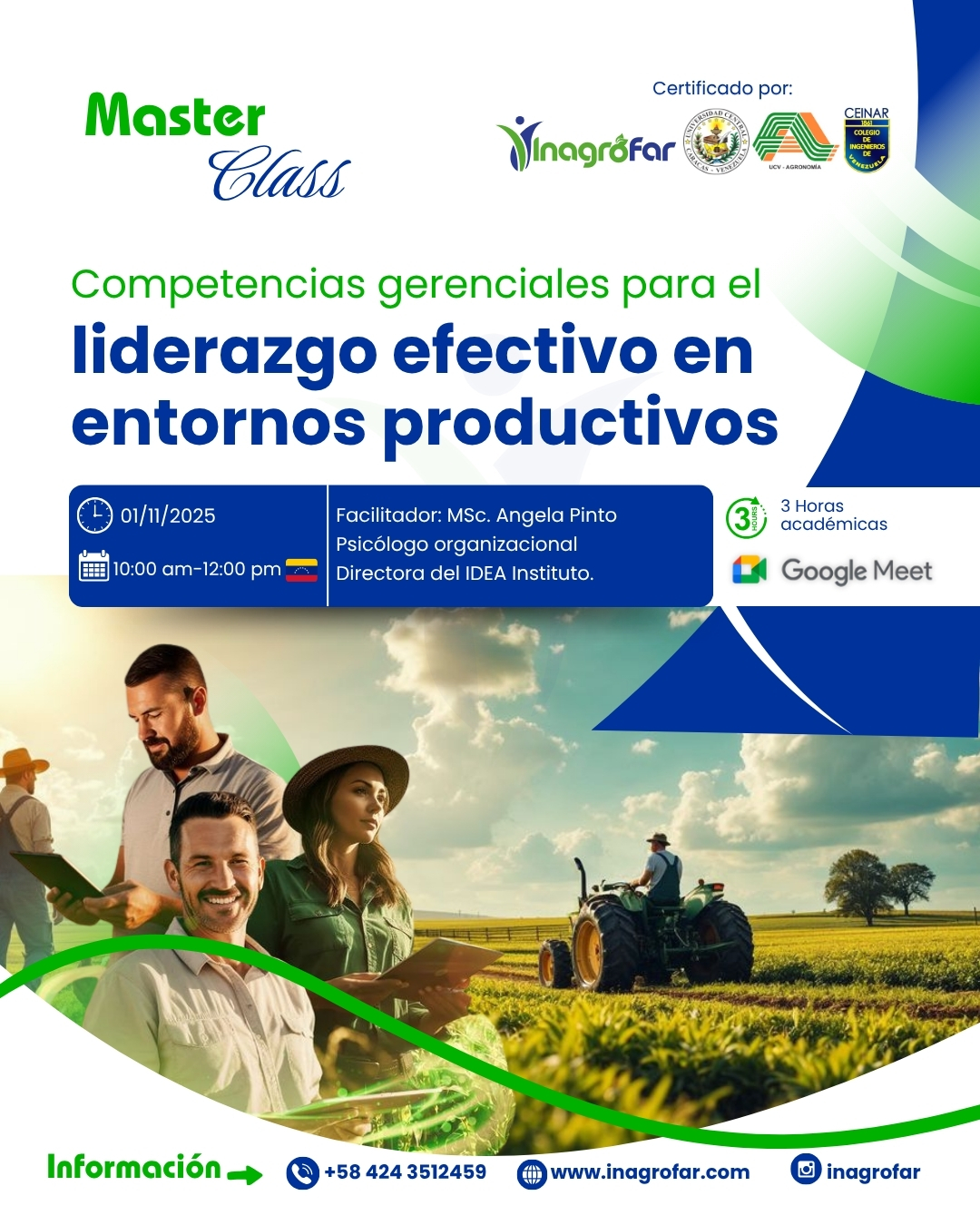 Participa en nuestra próxima Master Class: Competencias gerenciales para un liderazgo efectivo en Entornos productivos.